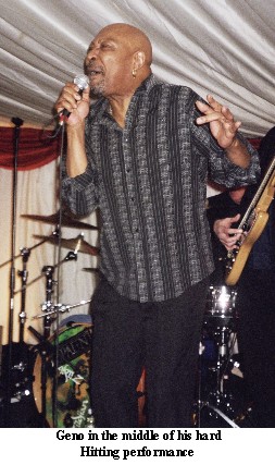 Just as he was 40-odd years ago when he first came to the California Ballroom, Geno is high performance and high octane. It also helps that he is a consummate showman: genial, funny, busier than a one-legged tap dancer and crazier than a fish with legs -- nobody sleeps when Geno's on. "I'll slow it down later," he said, "so y'all can grab some ass" -- but he never did, and nobody cared.